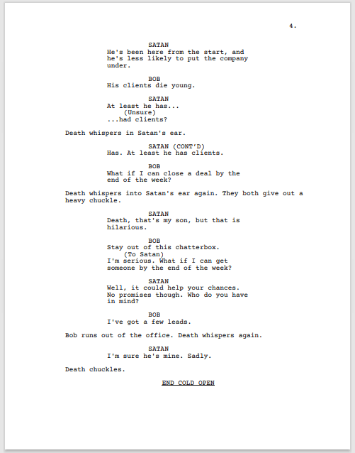 Even with all the exposition, I cared more about Bob and Satan in these last two pages, than I did at the start of the cold open.