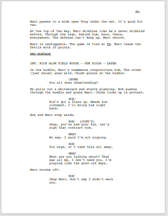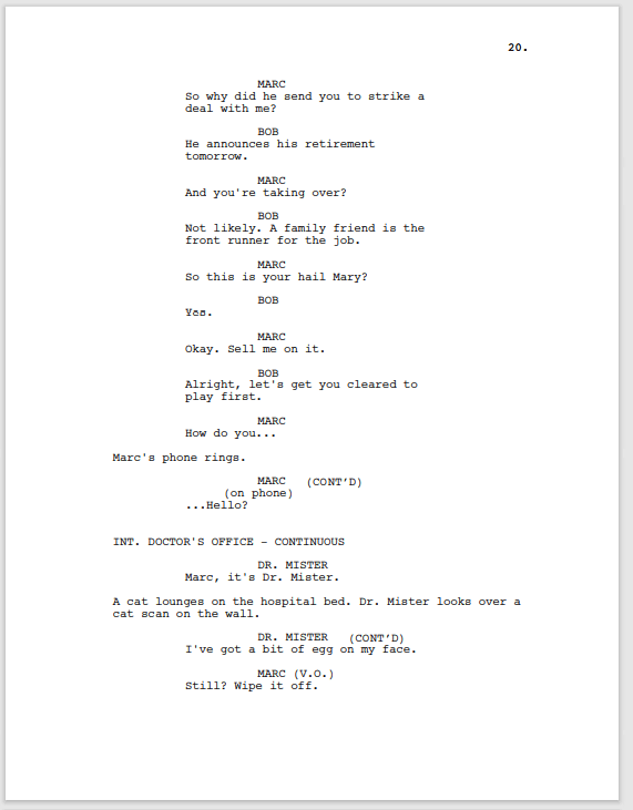Bob’s reason for picking Marc, and this conversation in general, just aren’t well defined. There needs to be more before this point and we’re already at 15 pages. This second act as a whole would need a good chopping.