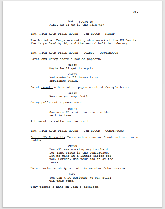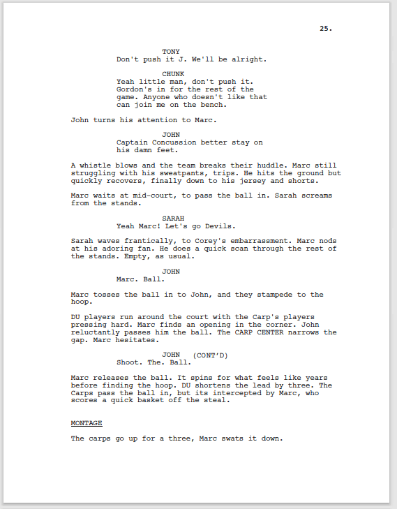 This is my master class. Today’s lesson, writing the most uninspiring and lackluster montage. At this point the script would have been better served to just cut to later in the game, where the Devils have tied it up.